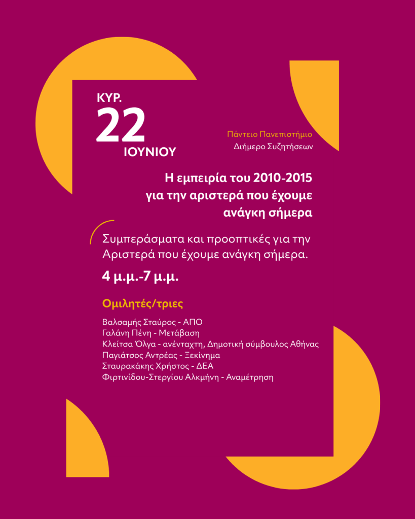 Η εμπειρία του 2010 – 2015, για την Αριστερά που έχουμε ανάγκη σήμερα // 2ήμερο συζητήσεων